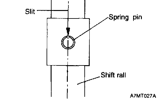 2) When installing, make sure that the slit of the spring pin is aligned with center line of the shift rail.