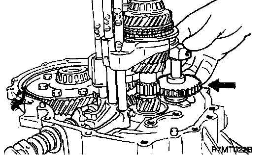 11. Install the reverse gear shaft and reverse gear in the direction illustrated.