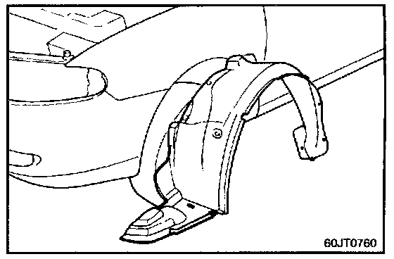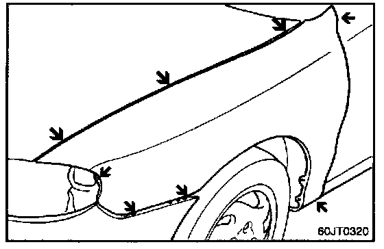NOTE: In order to prevent the fender mounting bolt area from forming rust, apply tape sealer between the fender and the body panel.