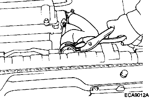 NOTE: Use a wire to suspend the exhaust pipe from the bottom of the vehicle.