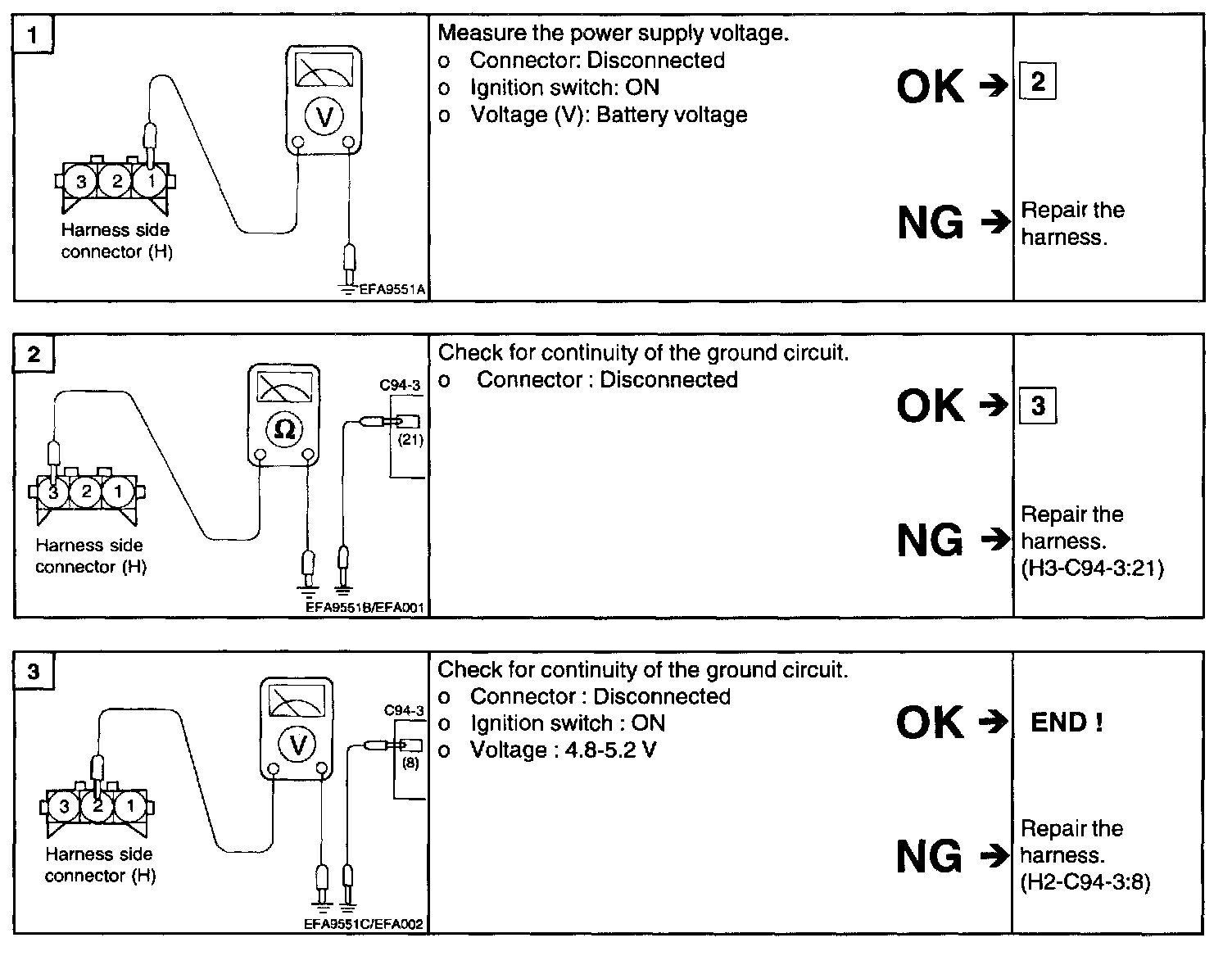 1. If unexpected shocks are felt during driving or the engine stalls suddenly, shake the crankshaft position sensor harness. If this causes the engine to stall, check for poor sensor connector contact.