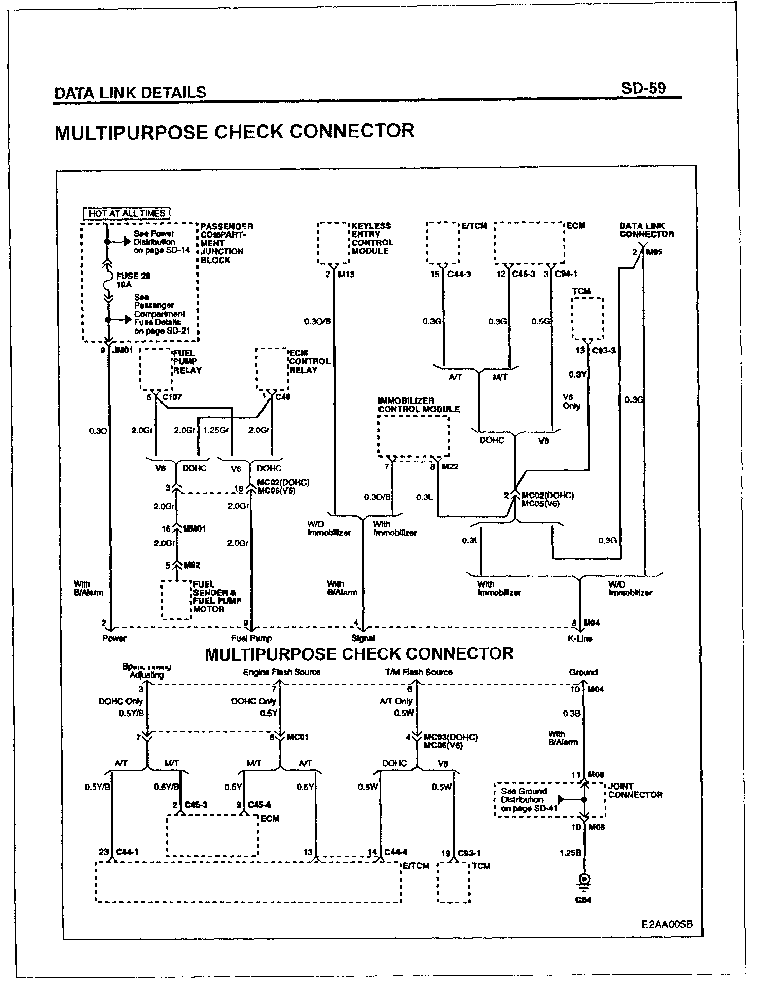 The multipurpose check connector in the 2000 Sonata has been changed from an 8 pin connector to a 10 pin connector.