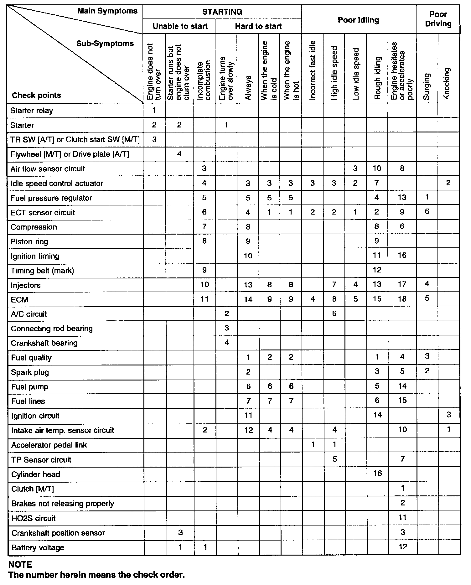 Symptom Cross Reference Chart