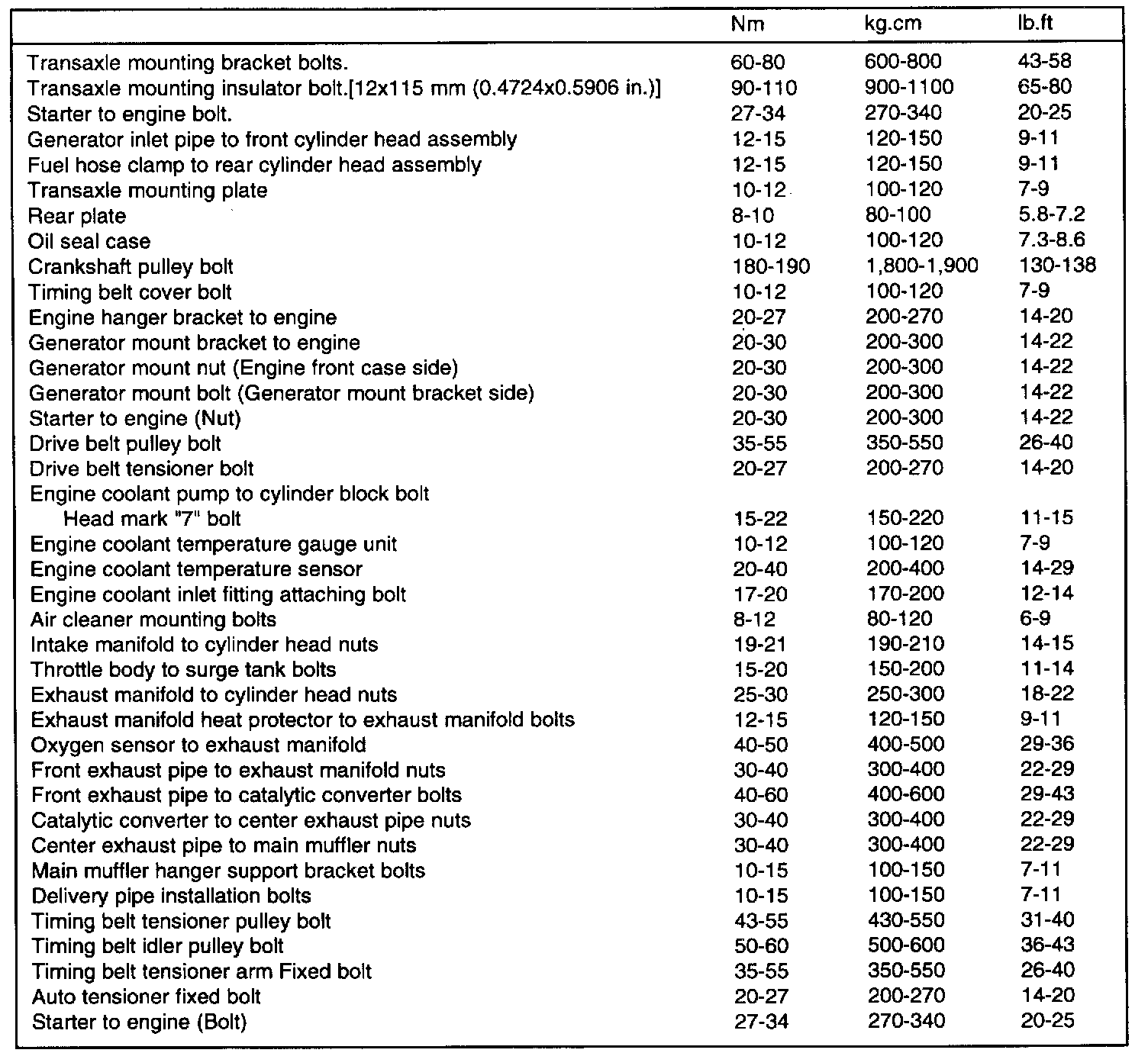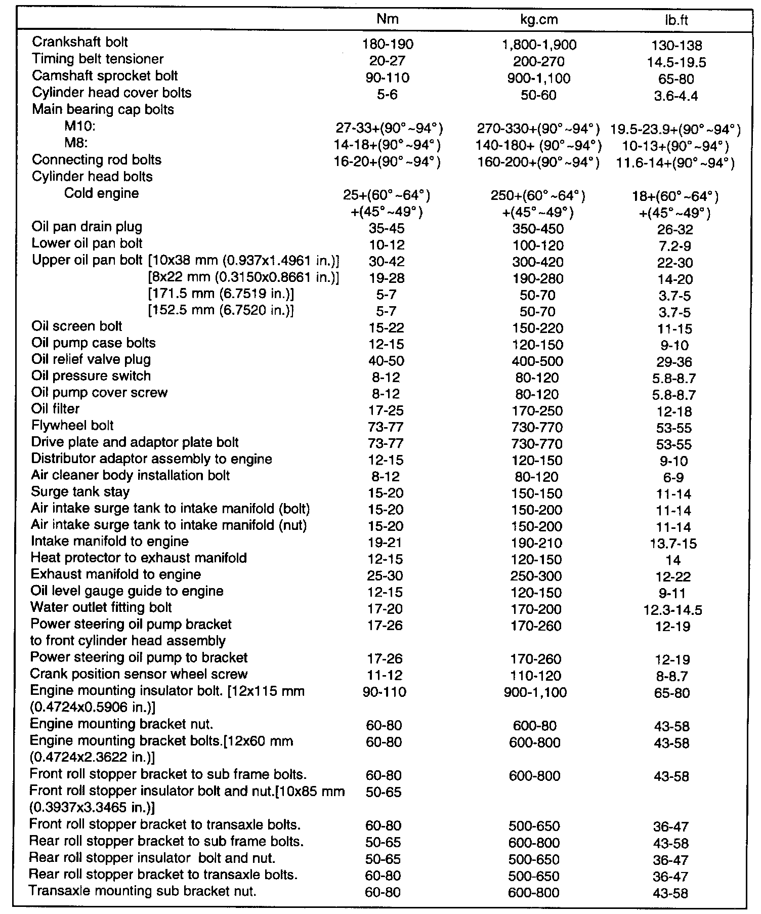 Bearing cap bolt: 10 - 12 Nm (140 - 150 kgf-cm, 10 - 11 ft. lbs.)
