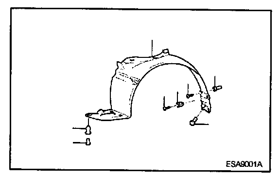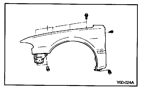 NOTE: In order to prevent the fender mounting bolts area from forming rust, apply tape sealer between the fender and the body panel.