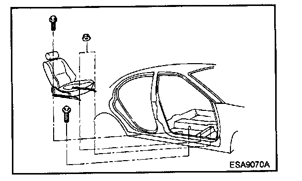 Front seat mounting bolts: 3.5 - 5.5 kg.m (25.4 - 40 lb.ft)