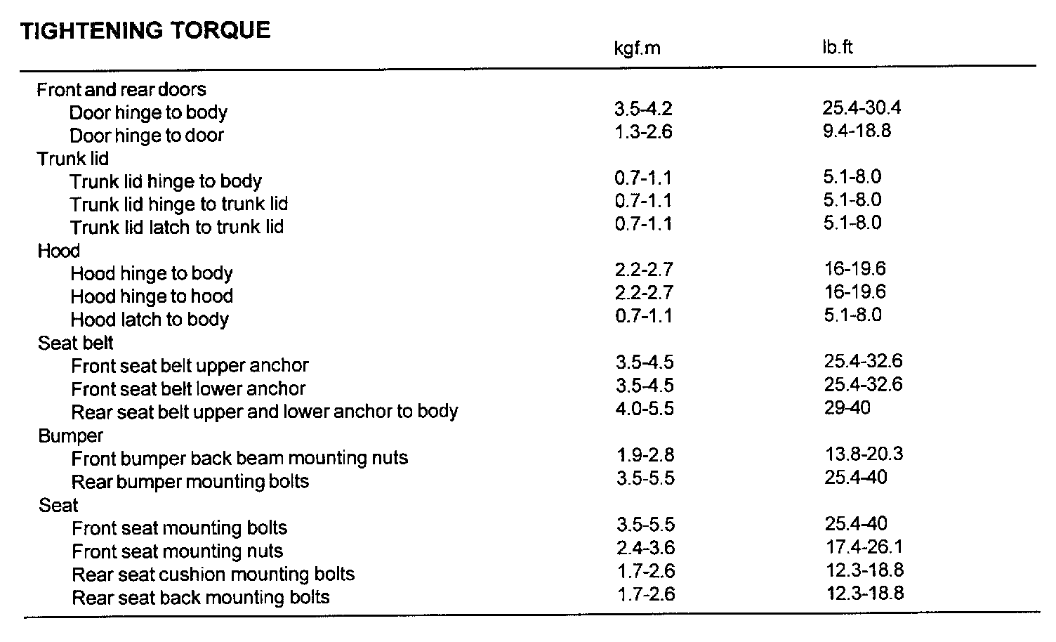 Tightening Torque: