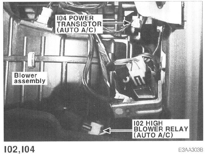 I02 High Blower Relay (Auto A/C), I04 Power Transistor (Auto A/C):