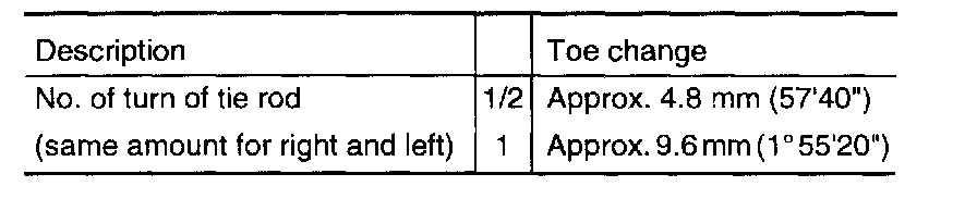 1. Toe-in adjustment should be made by turning the right and left tie rods the same amount.