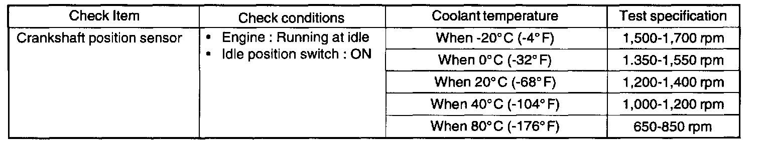 3. If the engine can be run at idle even if the crank angle sensor reading is out of specification, check the following: