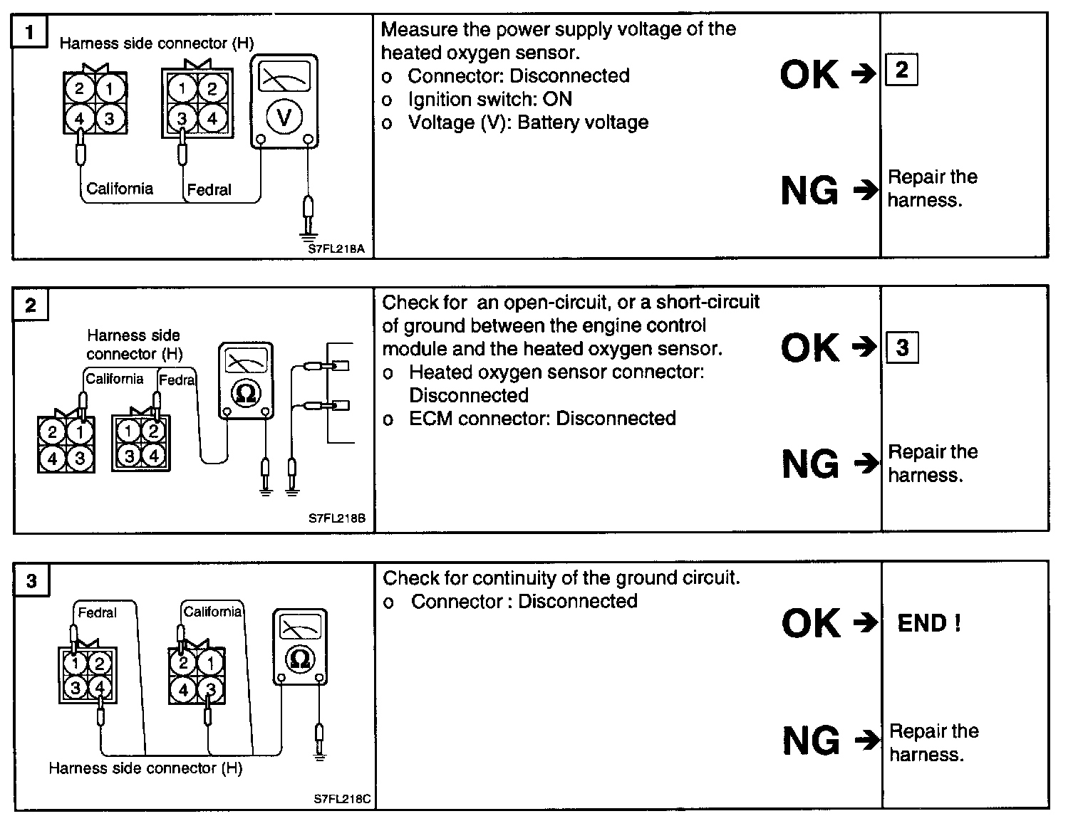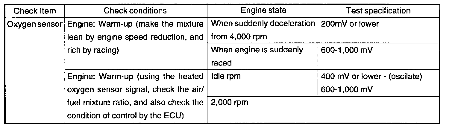 2. If the HO2S check results were normal, but the sensor output voltage is out of specification, check for the following items (related to air fuel ratio control system):
