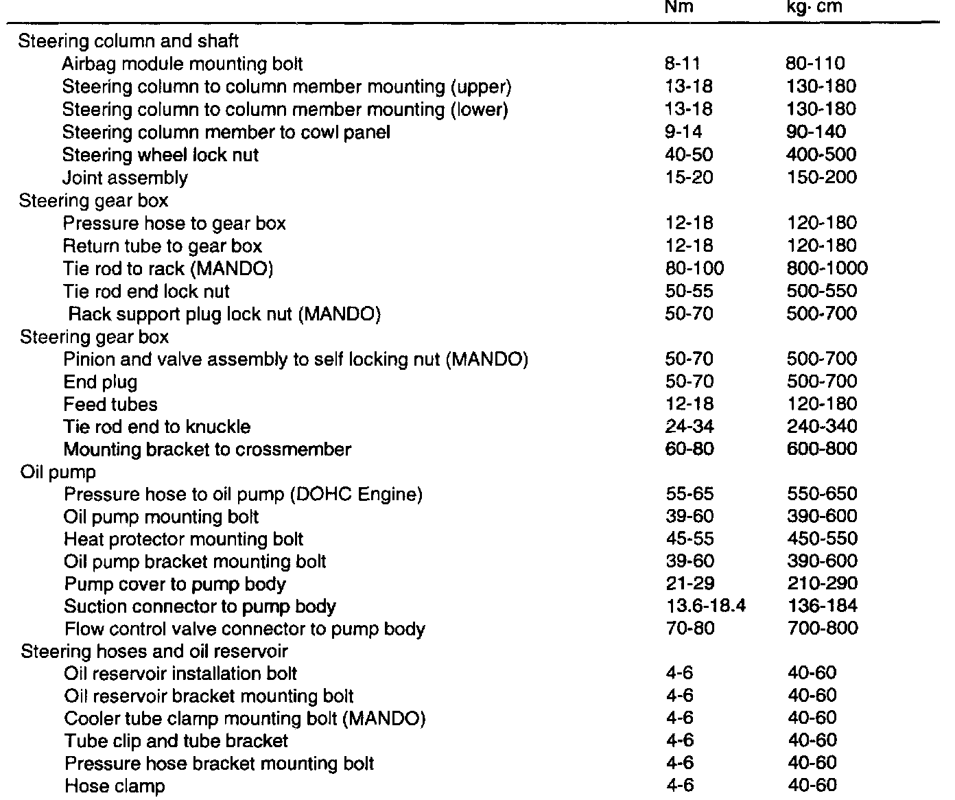 Tightening Specifications