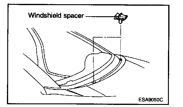3. Install the windshield glass spacer at the locations as shown in illustration.