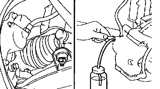 5. Pump the brake pedal several times, and then loosen the bleeder screw until fluid starts to run out without bubbles. Then close the bleeder screw.