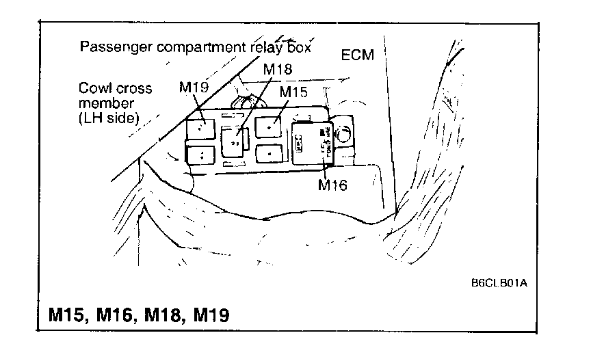 M16 Flasher unit, M18 Fuel pump relay, M19 Power window relay: