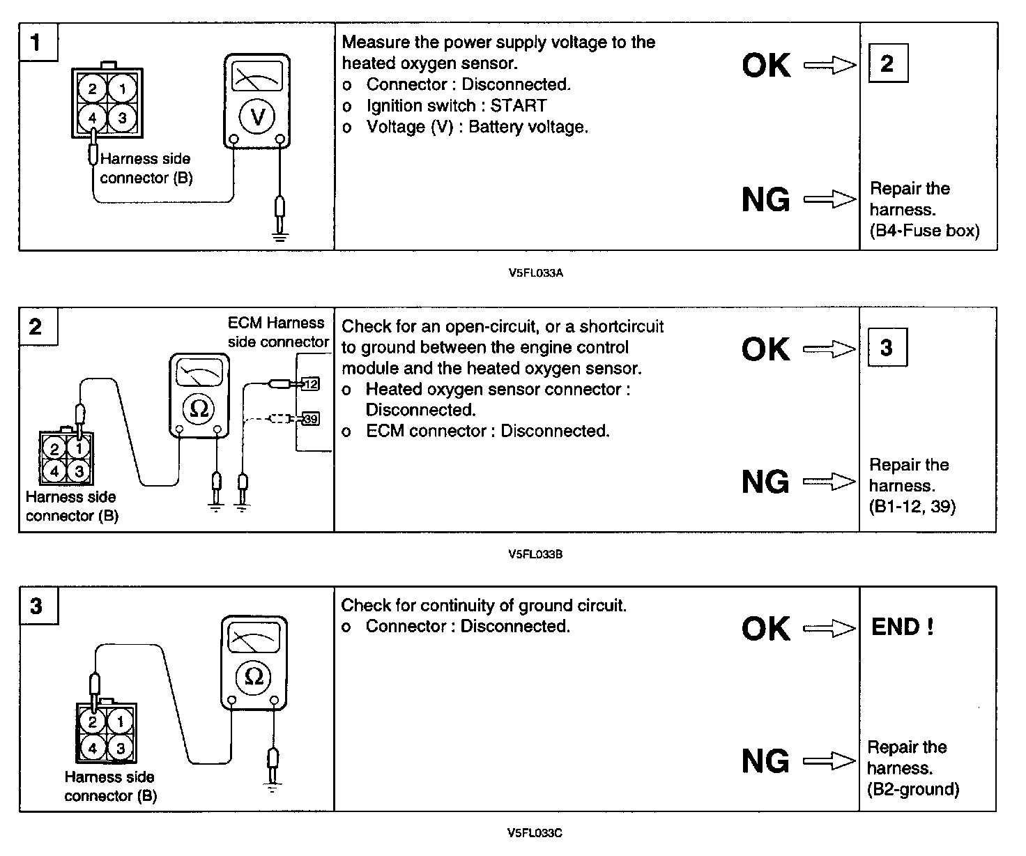 3. When O2 sensor output voltage is maintained as following for above 50 sec.