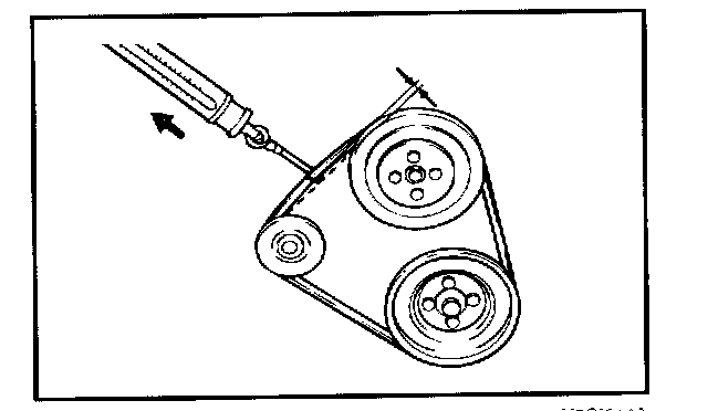 Measure the deflection of the V-belt at the point shown in the illustration.
