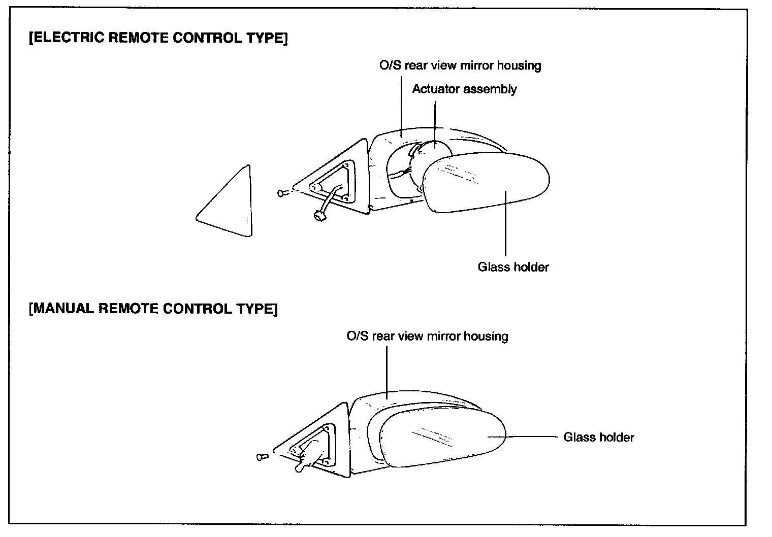 2. Remove the outside rearview mirror actuator from outside rearview mirror housing.