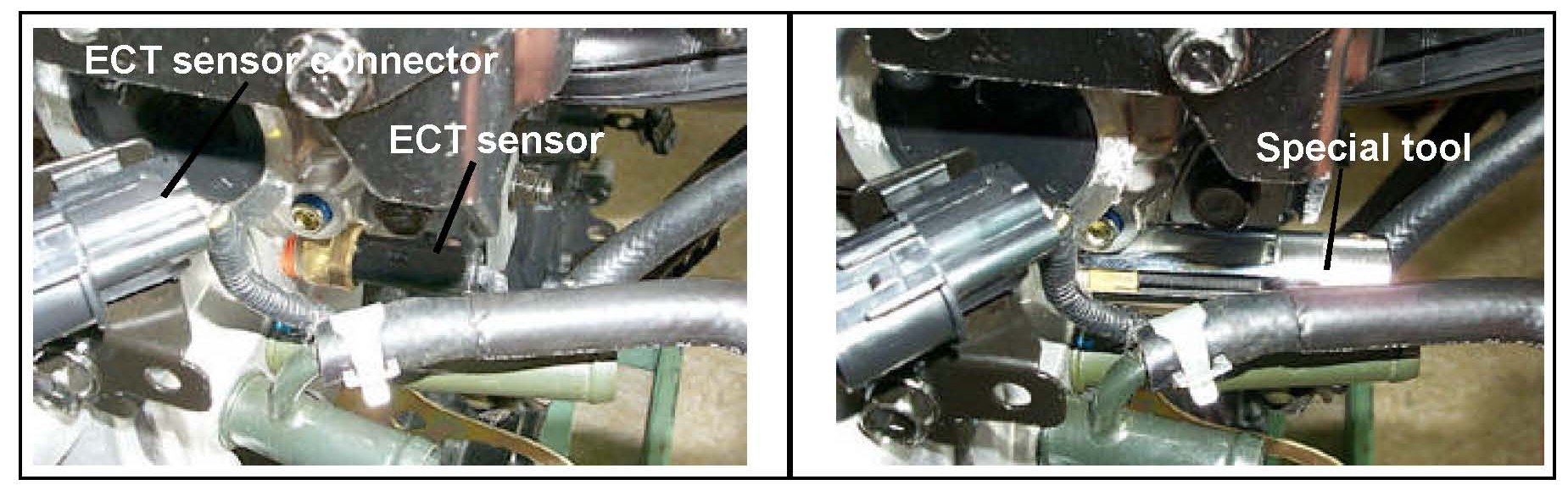 The Accent shop manual indicates conflicting information regarding the correct tightening torque for the ECT (Engine Coolant Temperature) sensor and does not indicate the need for a special tool for proper removal and installation.