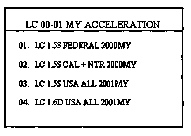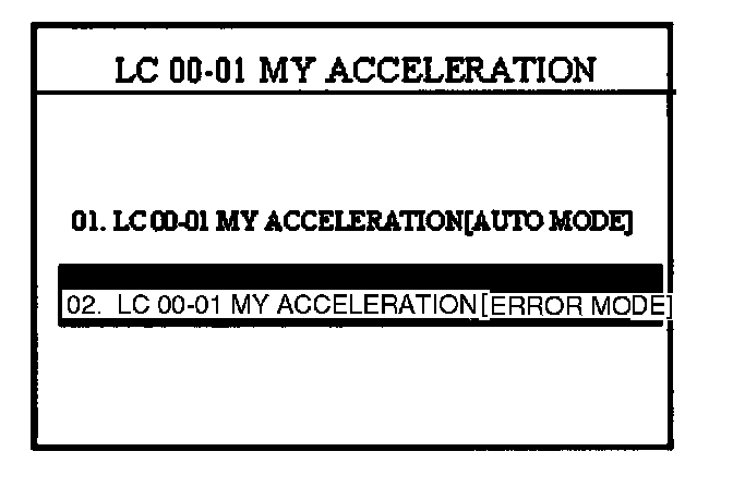 NOTE:In the event menu option "01. LC 00-01 MY ACCELERATION [AUTO MODE]" fails to download the new ECM program, option "02. LC 00-01 MY ACCELERATION [ERROR MODE]" must be used.