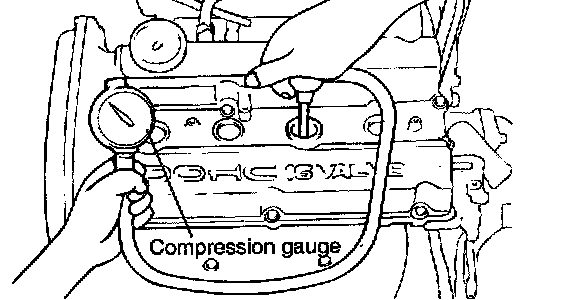 CHECKING COMPRESSION PRESSURE1. Before checking engine compression, check the engine oil level. Also check that the starter motor and battery are all in normal operating condition.