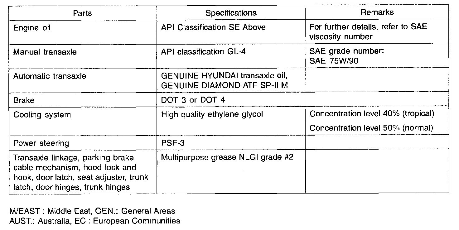 General Fluid Specifications