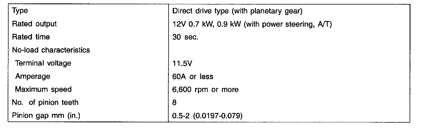 Starter Motor: Specifications