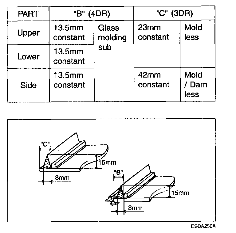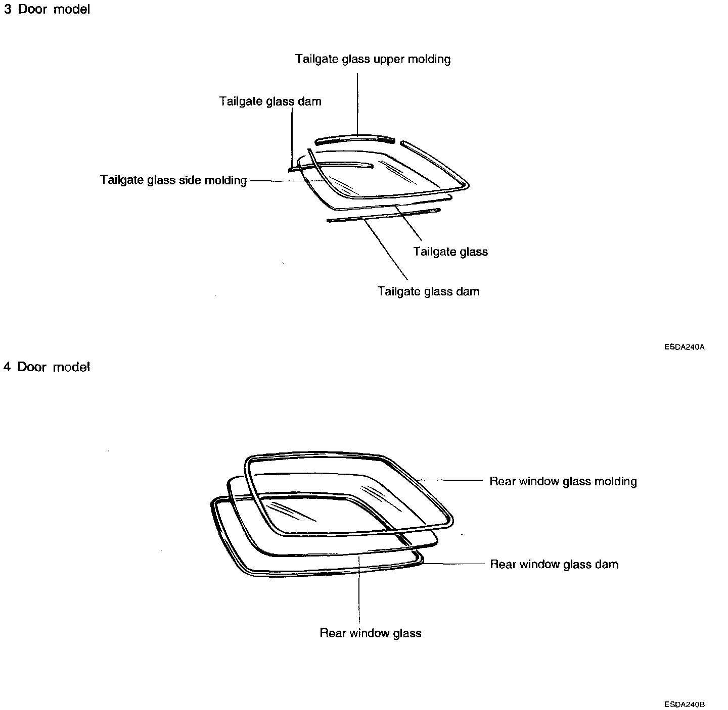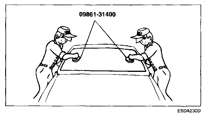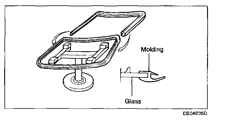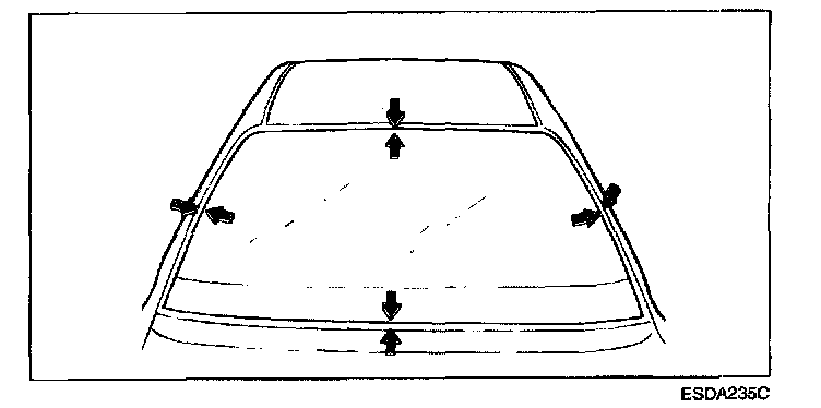 NOTE: Let the car stand for at least four hours after rear window glass installation. If the car has to be used within the first 8 hours, it must be driven slowly