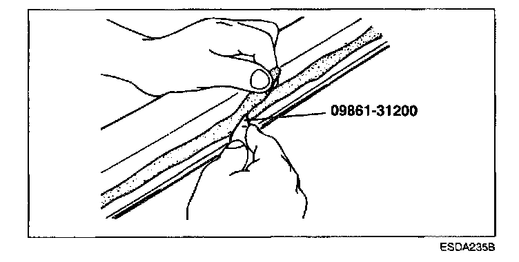 CAUTION: Be careful not to remove more adhesive than necessary, and also not to damage the paintwork on the body surface with the knife. If the paintwork is damaged, repair the damaged area with touch-up paint.