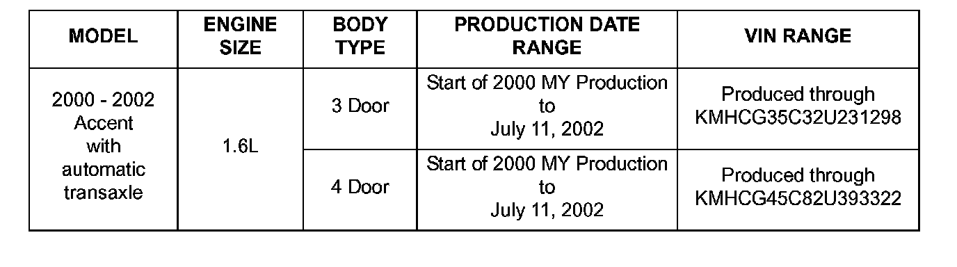 Some 2000-2002 MY Accent 1.6L vehicles may experience the following condition: