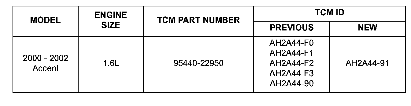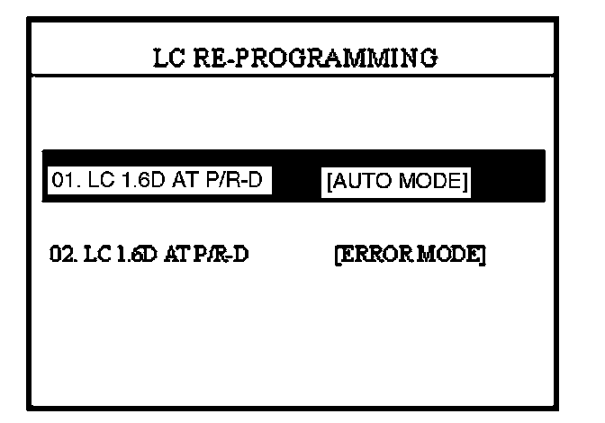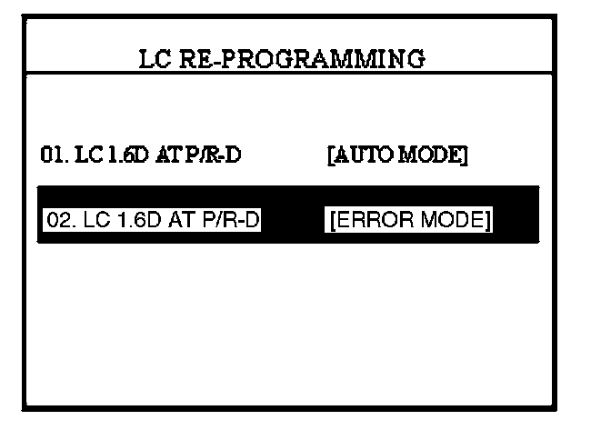 ^ In the event that option "01. LC 1.6D AT P/R-D [AUTO MODE]" fails to download the new TCM program, option "02. LC 1.6D AT P/R-D [ERROR MODE]" must be used.