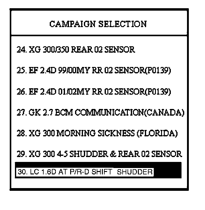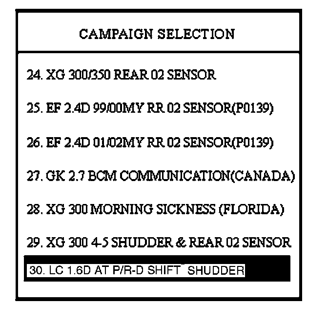 11. Select option "30. LC 1.6D AT P/R-D SHIFT SHUDDER" and press ENTER.