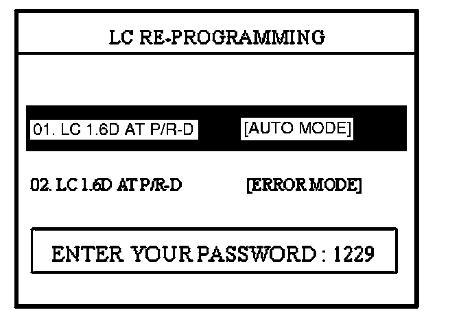 4. "REPROGRAMMING ERROR, PLEASE CHECK THE SYSTEM": In this case, you must reprogram manually after selecting the menu option "02. LC 1.6D P/R-D [ERROR MODE]".