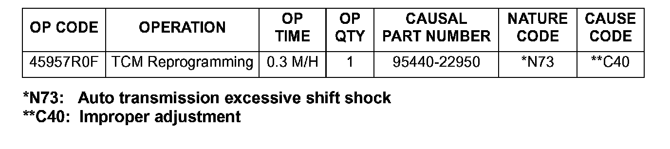 ^ Shock or delayed engagement during Park to Reverse or Park to Drive shift
