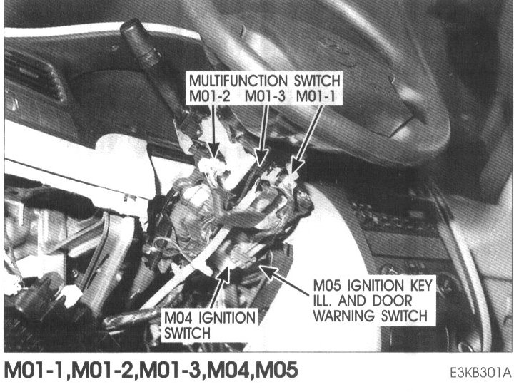 M01-1, M01-2, M01-3 Multifunction Switch, M04 Ignition Switch, M05 Ignition Key ILL. And Door Warning Switch: