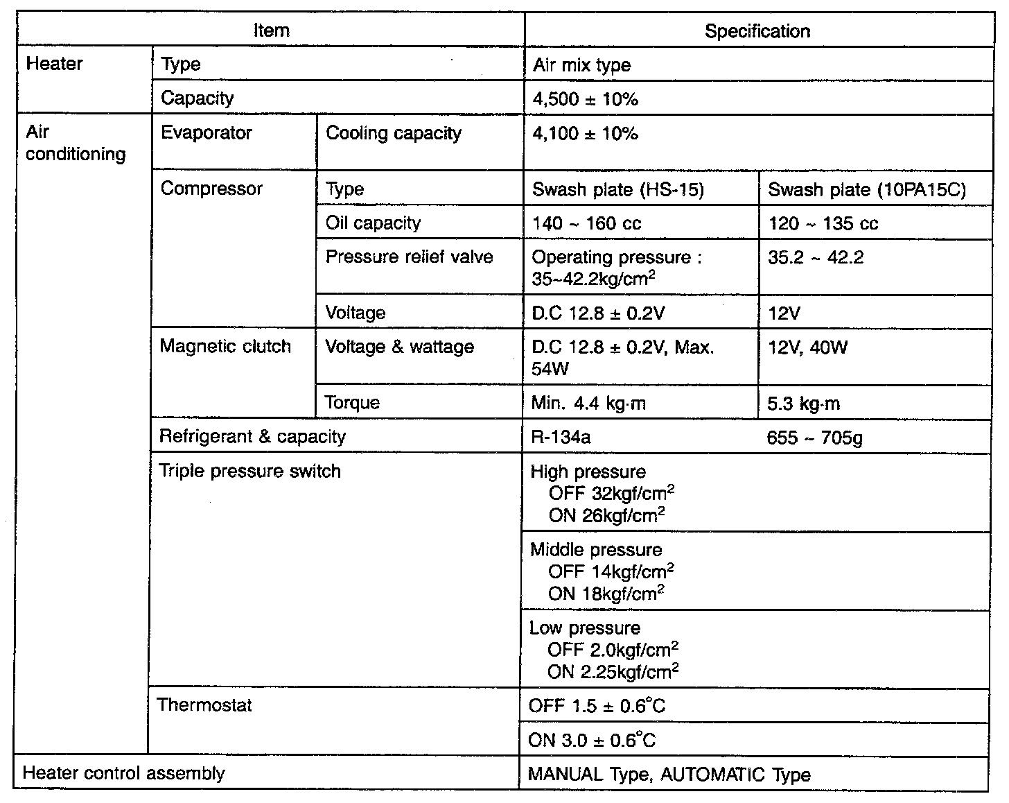 Heating and Air Conditioning: Specifications