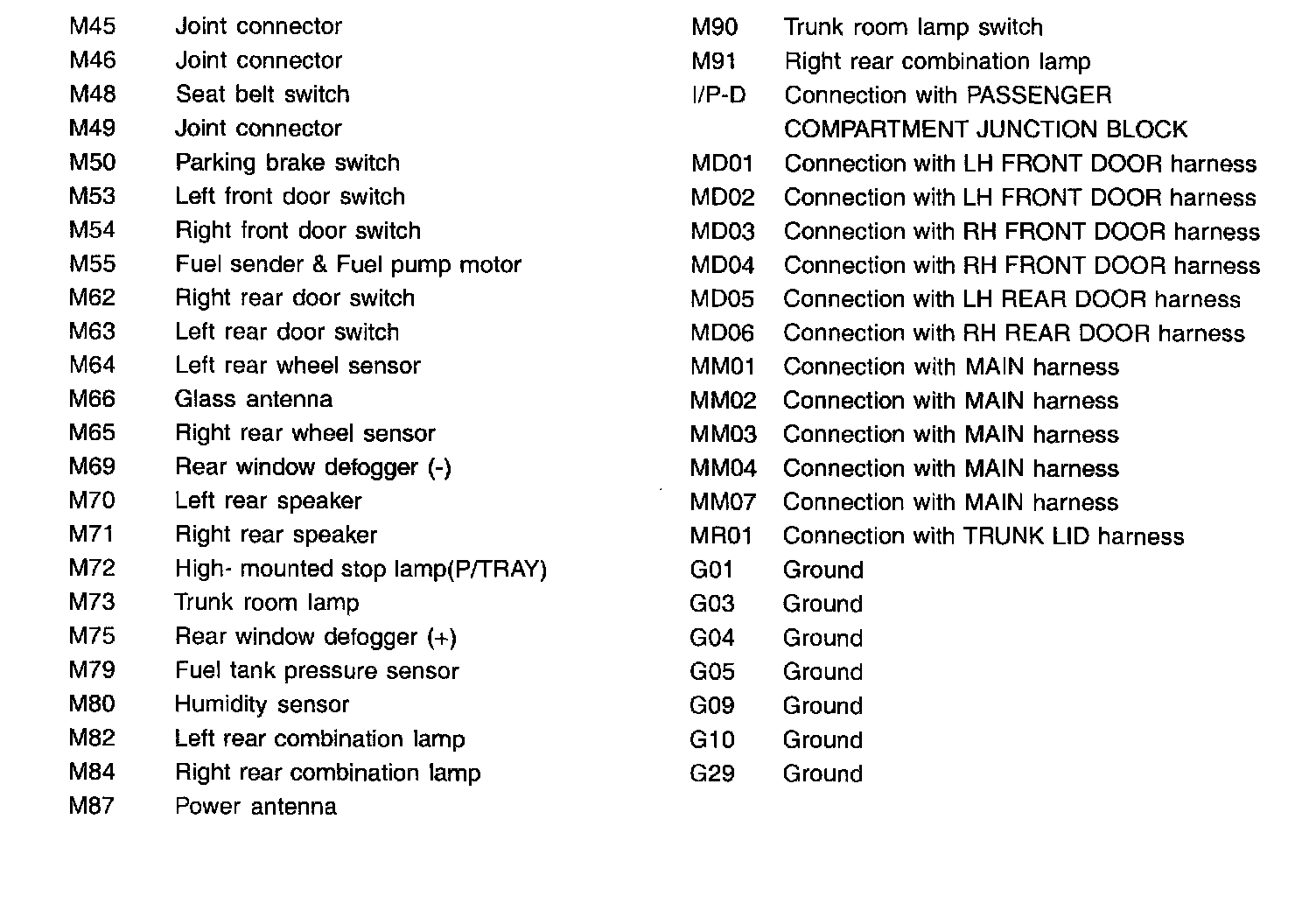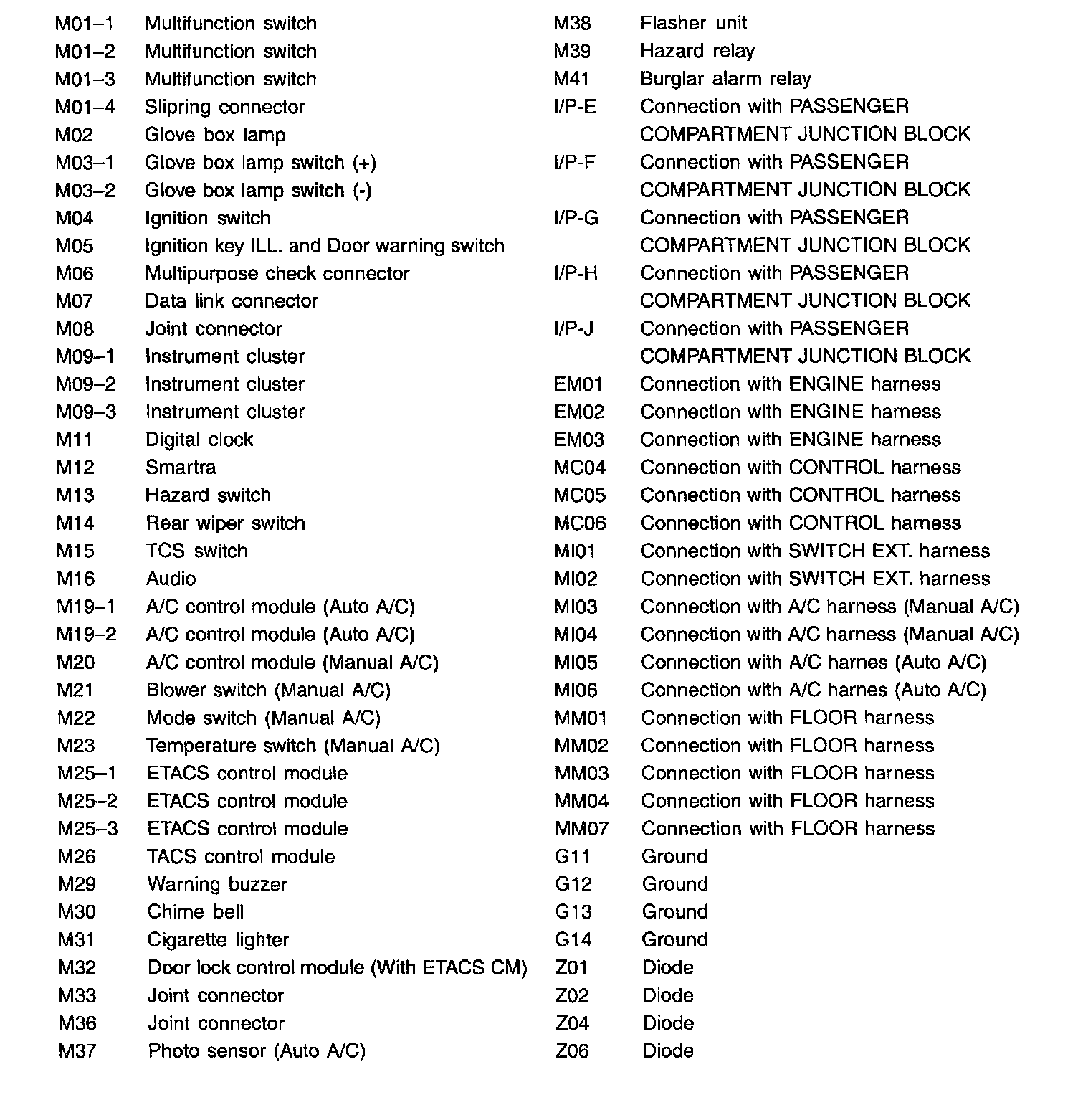 Main Harness (Floor) Index: