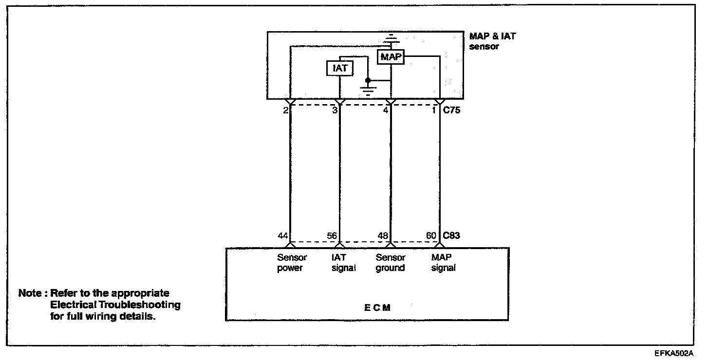 The intake air temperature sensor (IAT Sensor), built in to the MAP sensor, is a resistor-based sensor detect the intake air temperature. According to the intake air temperature information from the sensor, the ECM will control the necessary amount of fuel injection.