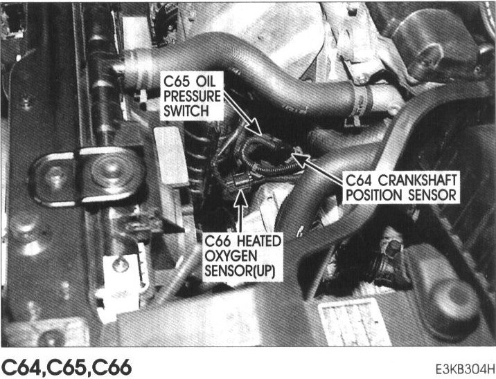 C64 Crankshaft Position Sensor, C65 Oil Pressure Switch, C66 Heated Oxygen Sensor (Up):