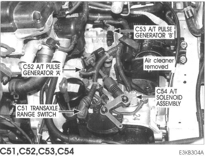 C51 Transaxle Range Switch, C52 A/T Pulse Generator 'A', C53 A/T Pulse Generator 'B', C54 A/T Solenoid Assembly: