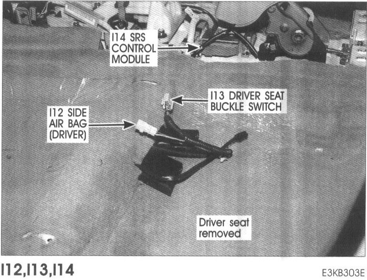 I12 Side Air Bag (Driver), I13 Driver Seat Buckle Switch, I14 SRS Control Module: