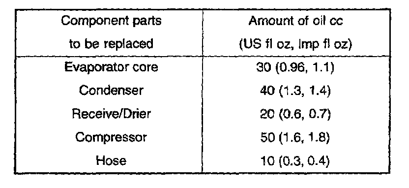 When replacing the system's component parts, be sure to add the specified amount of oil to the parts being replaced.