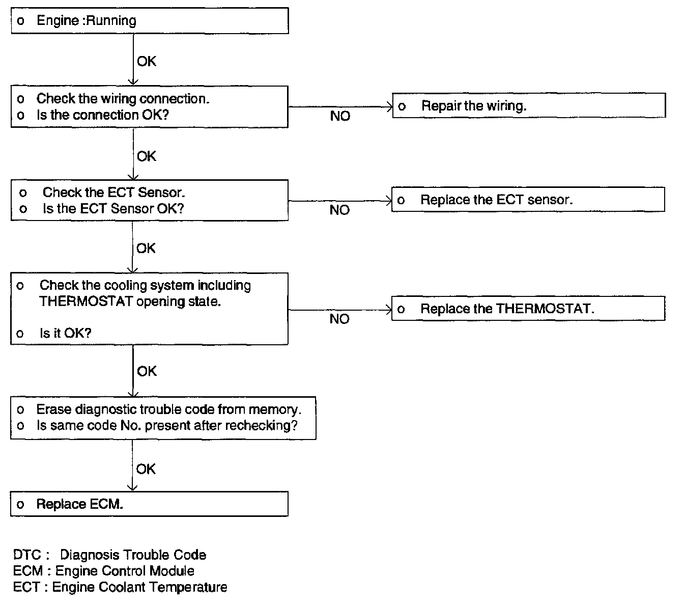If the fast idle speed is not enough or the engine gives off dark smoke during the engine warm-up operation, the engine coolant temperature sensor might be the cause.