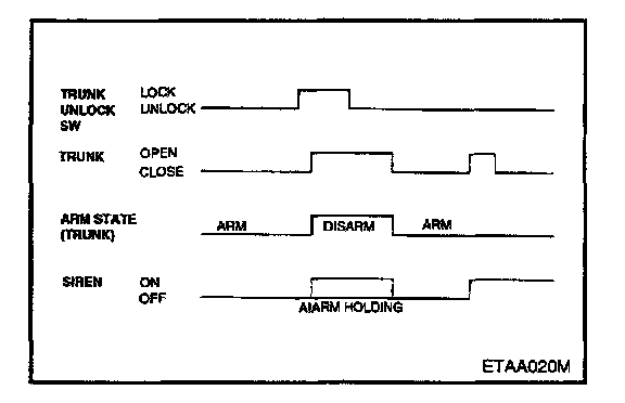 7. Trunk is unlocked during the alarm state.