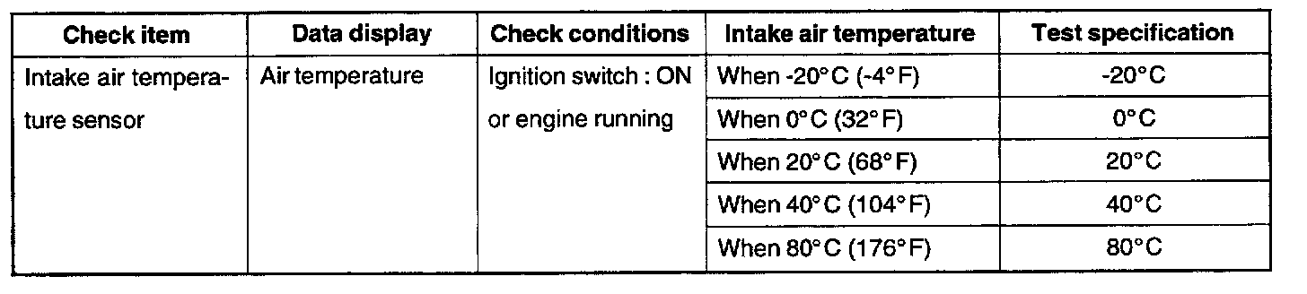 1. When the intake air temperature is detected as below -40 °C or higher than 120 °C.