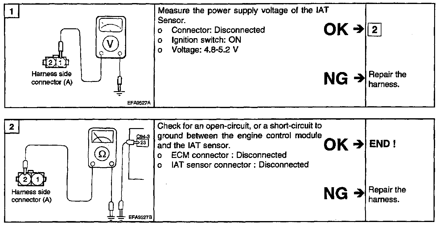 2. Measure the resistance between the IAT sensor terminal 1 and 2.