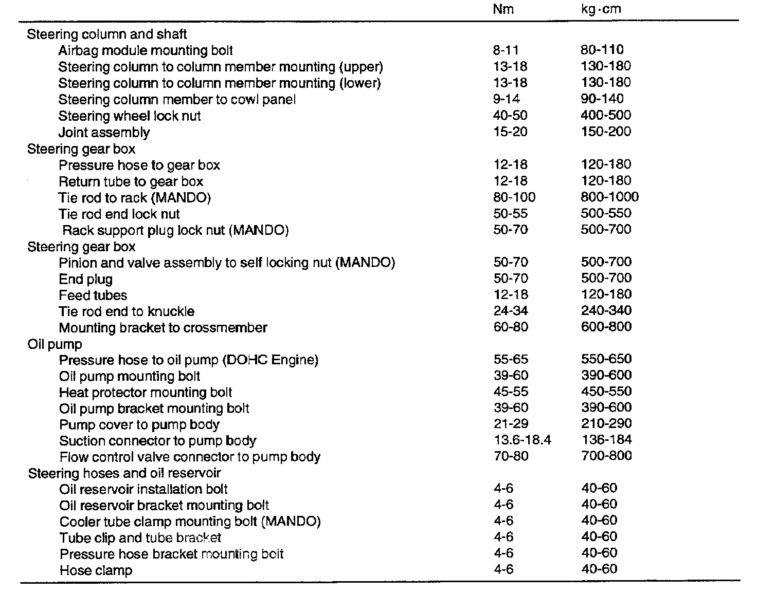 Tightening Specifications