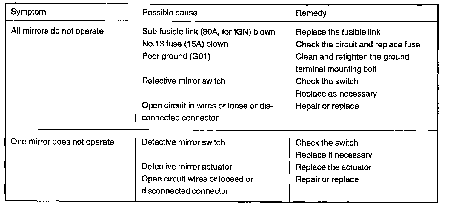 Power Door Mirror - Troubleshooting:
