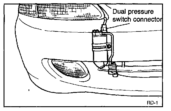 1. Check the dual pressure switch and the fittings for leakage, using a leak detector