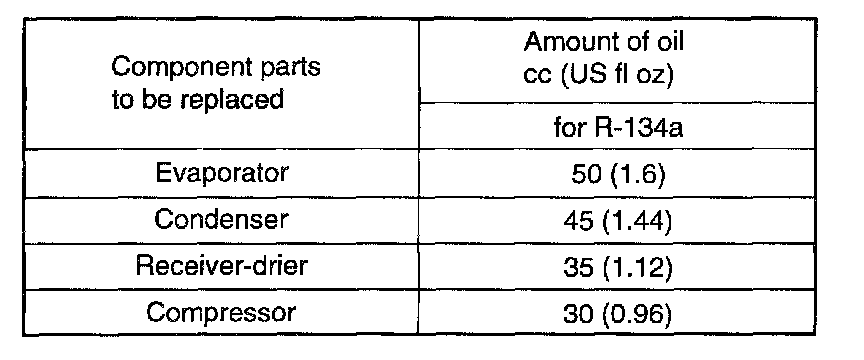 When replacing the system's component parts, be sure to add the specified amount of oil to the parts being replaced.
